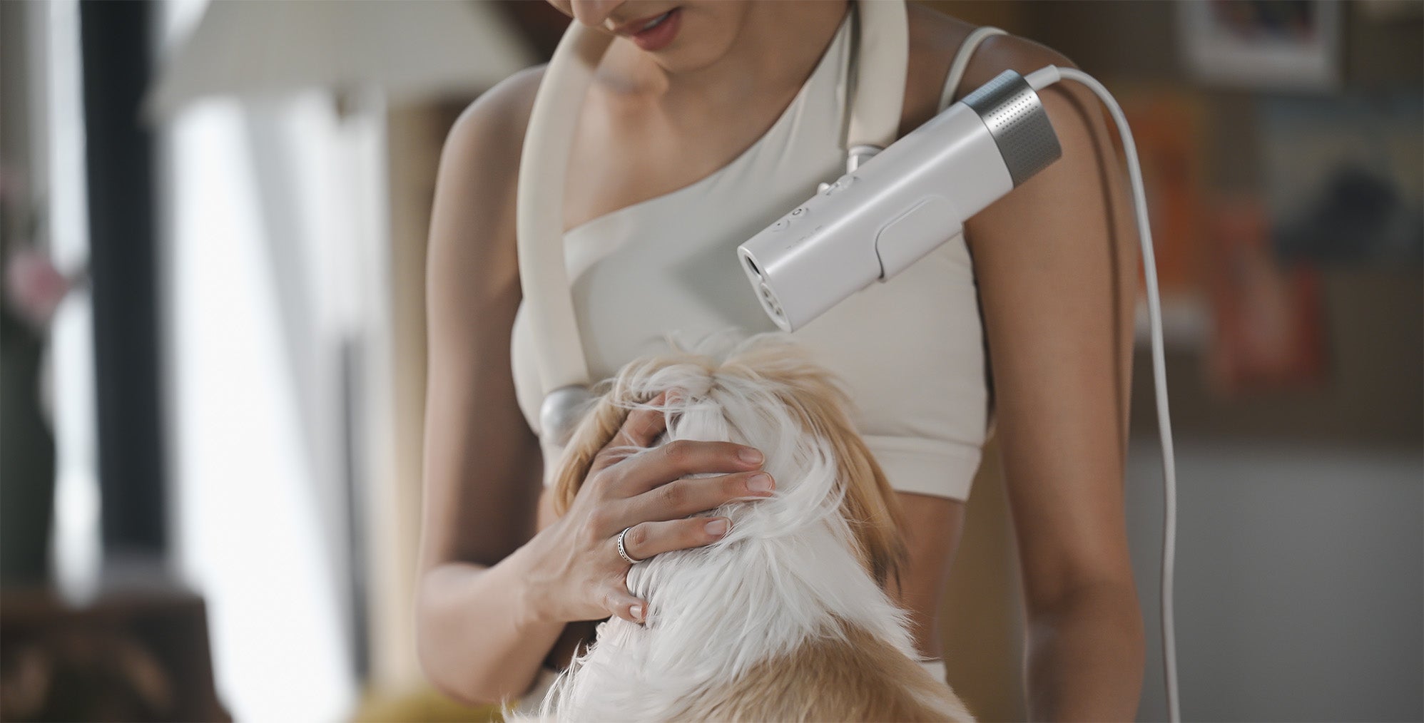 ZoliPet’s innovative neck-mount design lets you dry, brush, and comfort your pet simultaneously. No more aching arms or awkward angles.